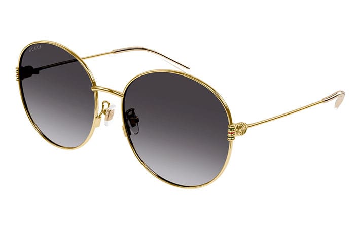 Gucci GG1281SK 001 gold grey 60. Kolekcijoje derinamos stilingos akinių formos su plačia spalvų palete.